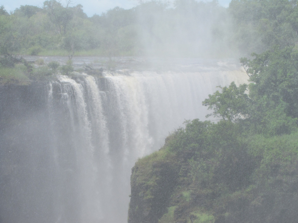 蔚为大观的维多利亚大瀑布可以说是世界奇观,姑且不说它的水量,它的瀑布的落差,仅仅是声音就足以让你震撼。从卢萨卡开车,经历了非洲大草原的奇景,看到各种动物从眼前穿过,公路上经常看到的都是长颈鹿或者是非洲雄狮的身影。距离瀑布还有十公里的时候,巨大的瀑布声音已经响在耳边,震耳欲聋。我们所住的“飞毛腿宾馆”,基本就是喊着说话,否则会影响听觉。后来,就像住在火车道旁边的公寓楼一样,习惯了,也就不用喊了。