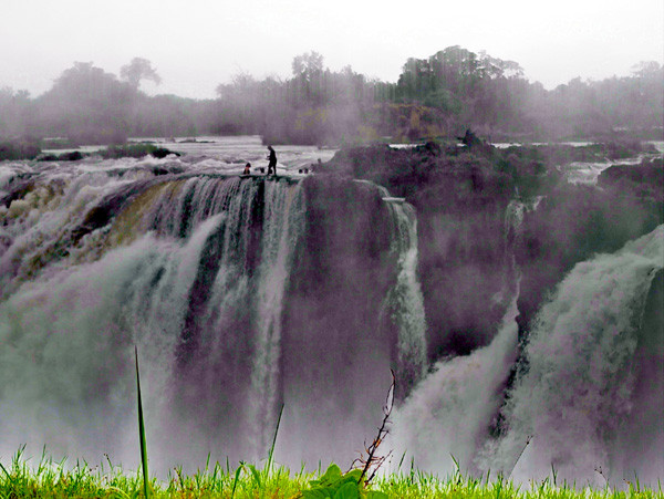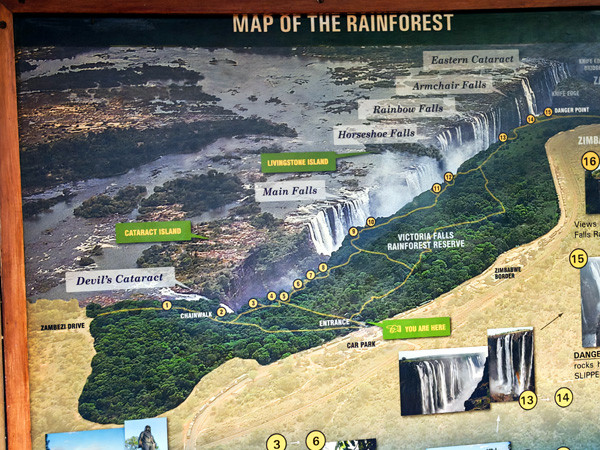 虽然当日阴雨雾气蒙蒙,影响了观赏大瀑布的效果,但是既来之则安之,眼前的每一处景观都不愿放过。在特别是在眺望对面赞比亚一侧的“魔鬼池”(Devil pool)时,还意外地发现了冒雨游泳的人。