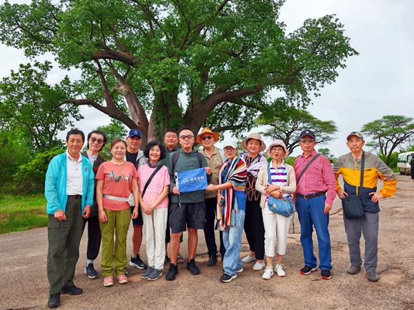 当日津巴布韦时间09:30,团队在领队焦健与地陪导游范尧的带领下,乘车前往维多利亚大瀑布津巴布韦一侧的风景区观光。途中,观赏了一颗具有千年树龄的猴面包树的奇妙景观,并在树前留下了在津巴布韦的一张大合影。
