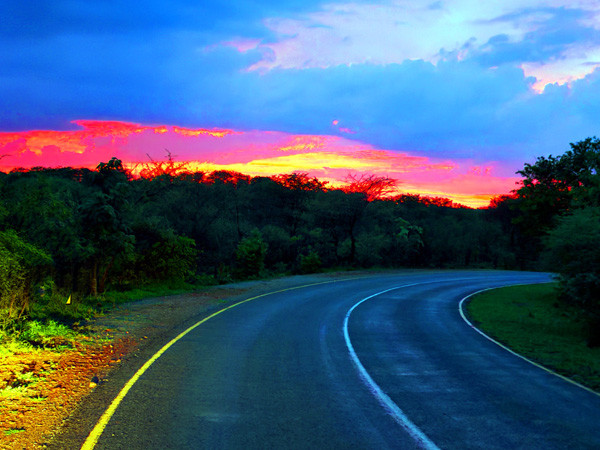 大家放下行囊,稍事休息后,就前往当地一个土著人开的BOMA饭店,用了一顿特色的自助晚餐。在前往餐馆途中,正赶上观赏雨后晚霞跃入天边的景象,夕阳整整红透了半边天,好一道大自然的美景。