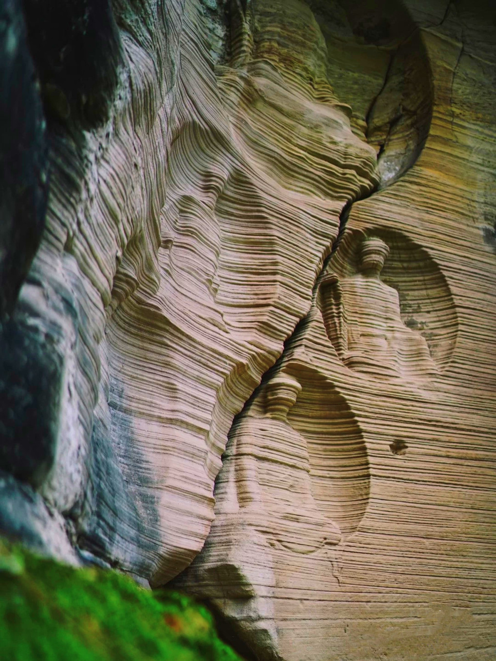 风欲止而石无涯,看石刻上被风拂过留下的哼唧,给人一种风刚好过境的动态石痕肌理,如同为佛像虔诚地拂上一层面纱,隐约不清晰的面容,却是种别样的美。