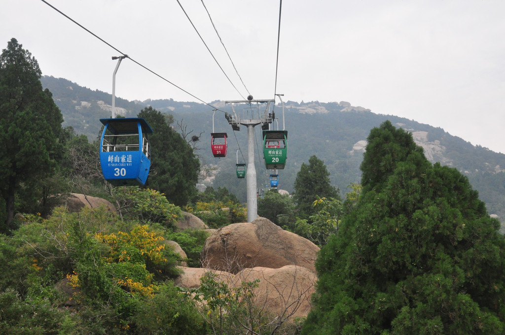 2路车显然很少,我们等了20多分钟才等到,好像是一个钟点才有车,票价2元。9点半上车,10点20分才到达景区西门。峄山景区有东门西门之分,西门有公交车,有索道站,所以一般散客走西门较为方便,自驾可以到东门上山。峄山景区门票50元,半票25元,另有单程索道票40元,可以选购。
