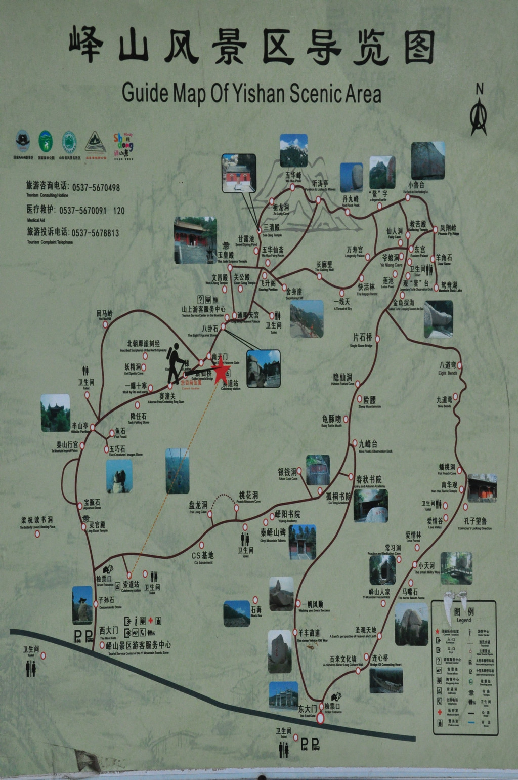 山上景点有盘龙洞、"鳌"字石、丹丸峰、八卦石、五巧石、仙人洞、二十四景、五大奇观、八段锦、九龙洞等,被称为二十四名石、十二福地、八大山门、三十六洞天。如果步行上山,由西门上,东门下,或者东门上,西门下,主要景点即可周全。不过由索道上,只能选择西路下或东路下,其中景点,或有遗漏。我们是索道上,西路下,因为必须在西门乘公交回县城。