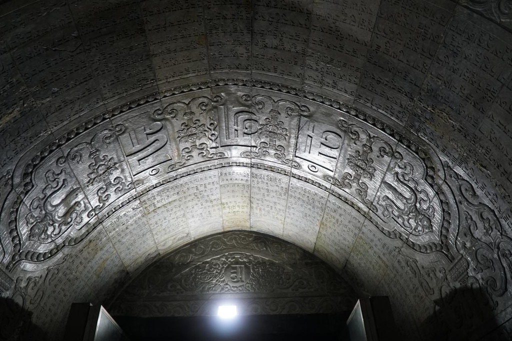 乾隆一生信佛,他的陵寝地宫从第一道石门起到最后的金券,将近400平米的落空面积内雕满了佛像、经文、供器,布局得当、雕技精湛充满了佛教色彩。光是雕刻这一项就用了3年的时间。