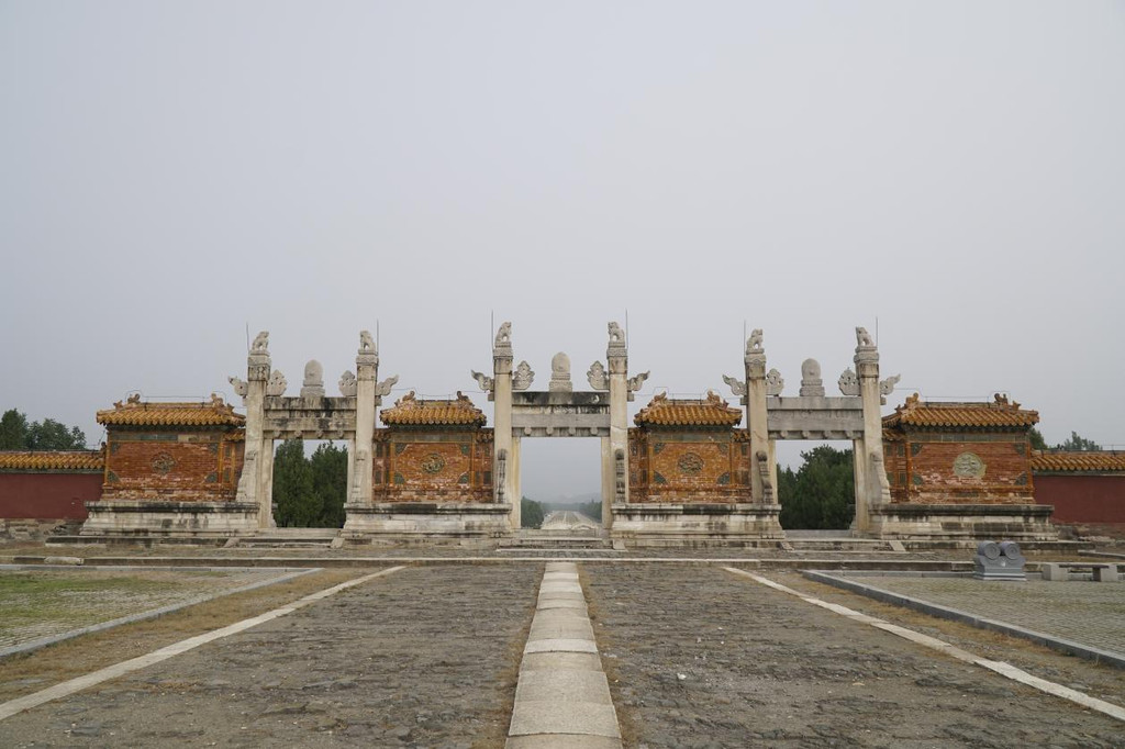 (清东陵最南端的孝陵石牌坊,中国现存面阔最宽,五间六柱十一楼仿木结构等级最高)