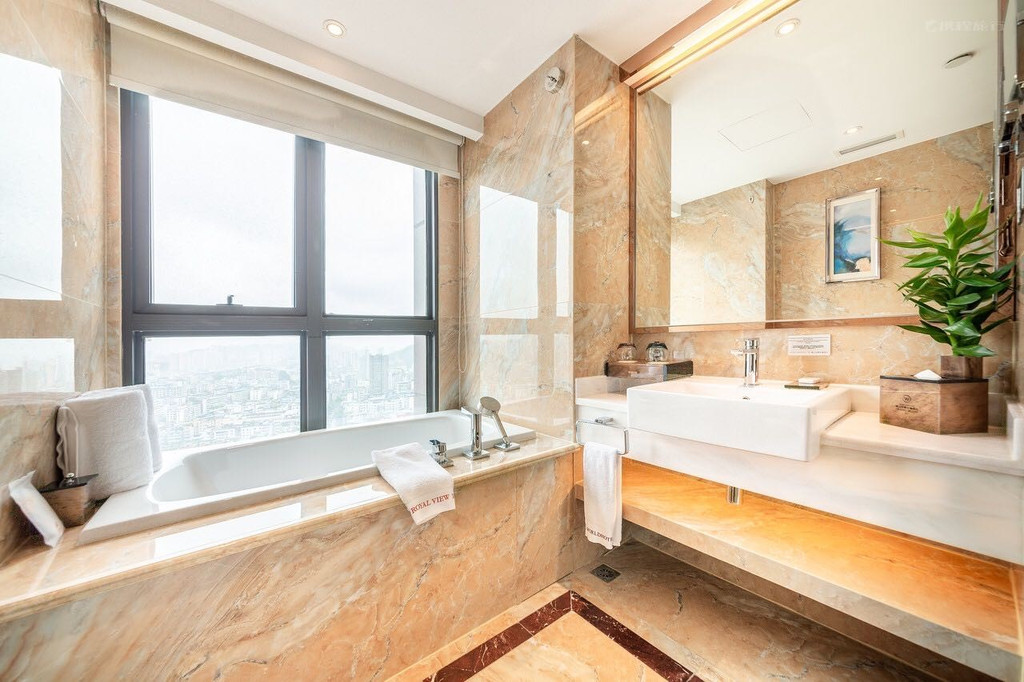 办理完入住我,我美美的敷个面膜,在泡个澡,浴缸太大太舒服了,不知不觉睡着了,醒来都九点了,也不想出门 。酒店有供应早中晚餐,我就在顺便就在酒店吃了一顿晚饭,我比较爱喝酒,但是一个人又不太安全,就问了餐厅服务员,酒店有酒吧吗,果然有个红酒吧,在服务员的带领下,来到了楼,顺便找了个位置坐下,一个人看着窗外的夜景,车水马龙,工作之余一个人旅旅游游,看看风景,享受一下属于自己的时光,谁说不惬意呢?第二天一早,我在酒店吃了早餐,是自助的,菜品太多了, 水果点心,粉面,都有,我本着有便宜不占就是吃亏的原则,我吃撑了。我准备去健身房减轻一下负罪感,服务员告诉我还有室内游泳池,我又本着出来旅游不拍照就是白游的原则,我转身就去游泳池拍照去了,不对是去游泳!