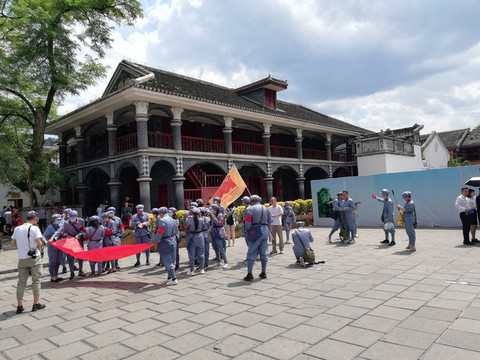 院内另一座气势恢宏的仿民居建筑是遵义会议纪念馆,馆内展示了红军长征的历史,其中对红军转战贵州,遵义会议和四渡赤水等重要历史事件都有非常详细的描述。纪念馆出口外是一片新造的“红色”仿古街区,有红军总政治部旧址、苏维埃国家银行旧址、红军遵义警备司令部等旧址和部分与会者的纪念馆可供参观,红军街则是小吃和购物一条街。