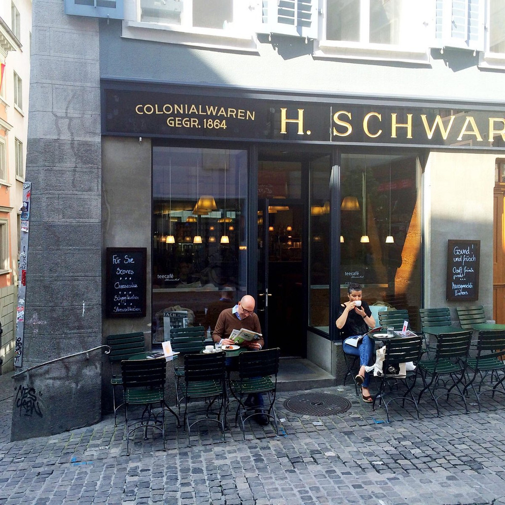 第一天早上,前往苏黎世市中心探索旧城区。跟随着阳光的方向走,找到 H. Schwarzenbach 这家咖啡馆,那里新鲜烘焙的咖啡香气会顺着街道飘散而来。与当地人一起在人行道上的桌子旁喝一杯。我喜欢在这里浏览来自世界各地的老式干果和坚果陈列品,然后到街对面的 Café & Conditorei 1842 餐厅去欣赏橱窗里的糕点和巧克力。