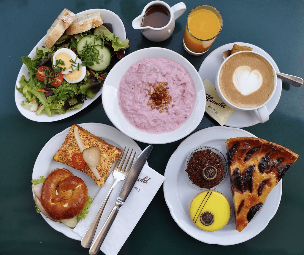 苏黎世有很多早餐餐厅可供选择,但最好的选择莫过于 Bank。品尝一杯咖啡和新鲜出炉的 Gipfeli(密度更大的羊角面包)。根据天气情况,可以在外面的人行道上或漂亮的前银行大楼内找张桌子坐下。不妨尝尝美味的面包和糕点,或许还可以买一份巧克力夹心面包,供日后享用。如果在周二或周五前往,农贸市场会一直热闹到上午 11 点。