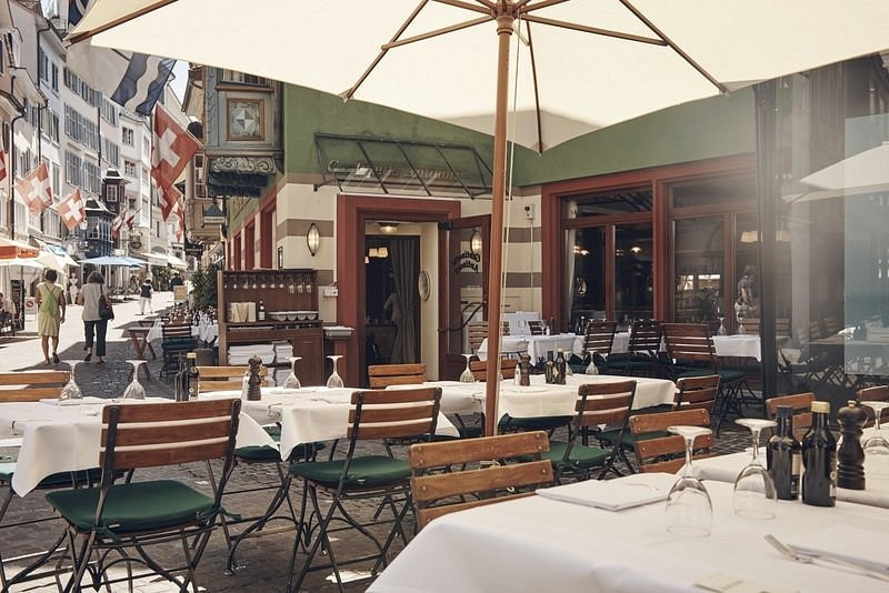 如果想来一杯餐前饮品,我推荐乌拉尼亚 (Urania) 的 Jules Vernes Panoramabar 酒吧。这里最吸引人的是美景,日落时分人山人海。如果你能尽情放松,不妨前往位于阅兵广场 (Paradeplatz) 附近的餐厅 Coco Grill and Ba。这家餐厅坐落在郁郁葱葱的花园中,花园里散落着几张桌子,仿佛是城市中心的一片小绿洲。