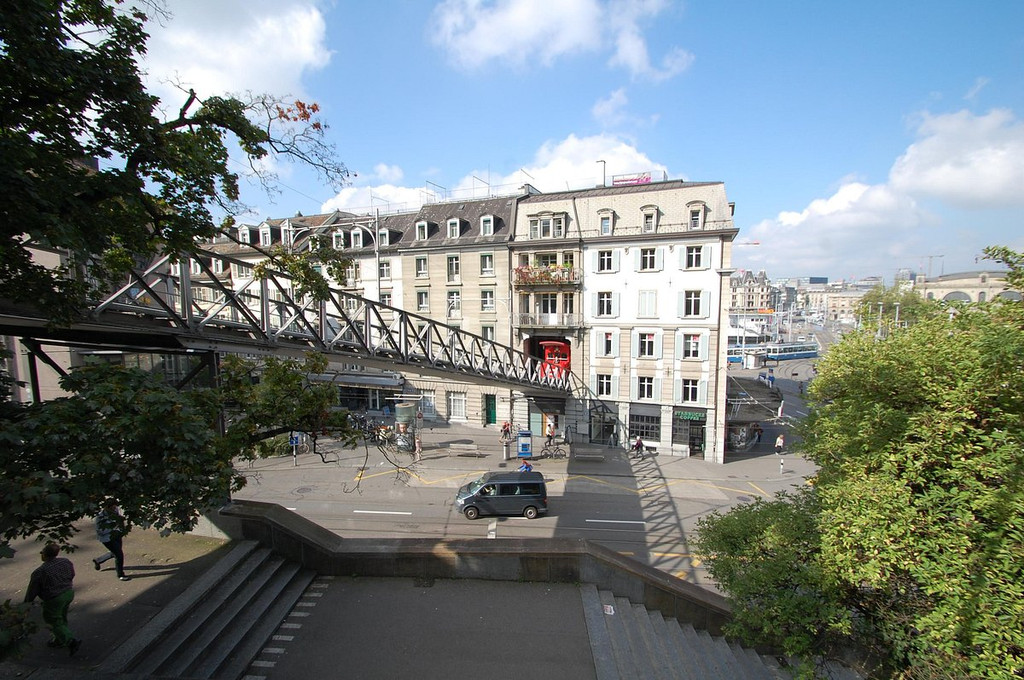 午餐后,前往河对岸的 UBS Polybahn 复古红色缆车,其历史可以追溯到 1889 年。站在塔顶,可以欣赏到城市的最佳景观。你可以一路看到 Prime Tower 塔,这座塔曾经是瑞士最高的建筑(现在仍然令人印象深刻)。