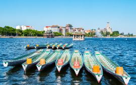 较适宜白天较适宜划船,但阴沉的天气和较大的风力,会对划船产生一定的影响。